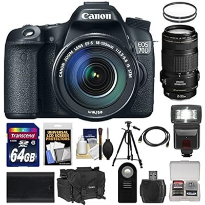 You're looking for Canon EOS 70D Digital SLR Camera EFS 18135mm IS STM with 70300mm IS Lens 64GB Card Battery Case Filters Tripod Flash Kit This is a quality product We recommend.