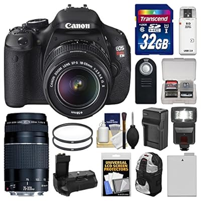 You're looking for Canon EOS Rebel T3i Digital SLR Camera 1855mm IS II Lens with 75300mm III Lens 32GB Card Backpack LED Flash Grip Battery Kit This is a quality product We recommend.