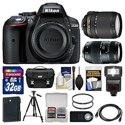 You're looking for Nikon D5300 Digital SLR Camera Body (Black) with 18140mm VR 70300mm Zoom Lens 32GB Card Case Flash Battery Kit This is a quality product We recommend.